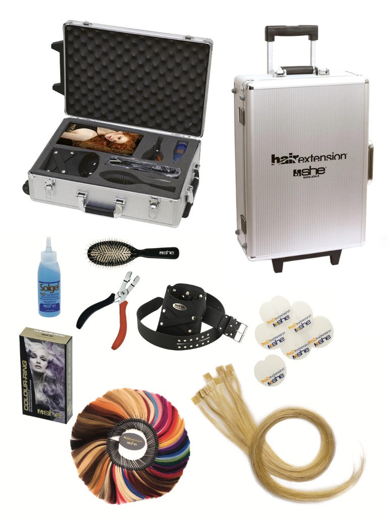 Everything you need for extensions packed in a representative trolley case.