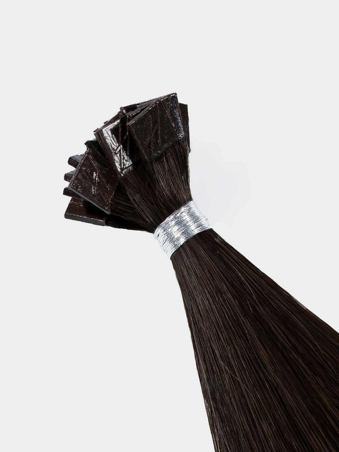 10 Keratin Flat Tip Extensions - professional Quality - 16" straight - 4 dark chestnut