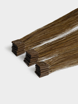 For a medium hair volume, you’ll need 8 - 13 packs, corresponding to 80 - 130 strands or to a hair volume of 64 - 104 g. Suitable for a full hair extension.